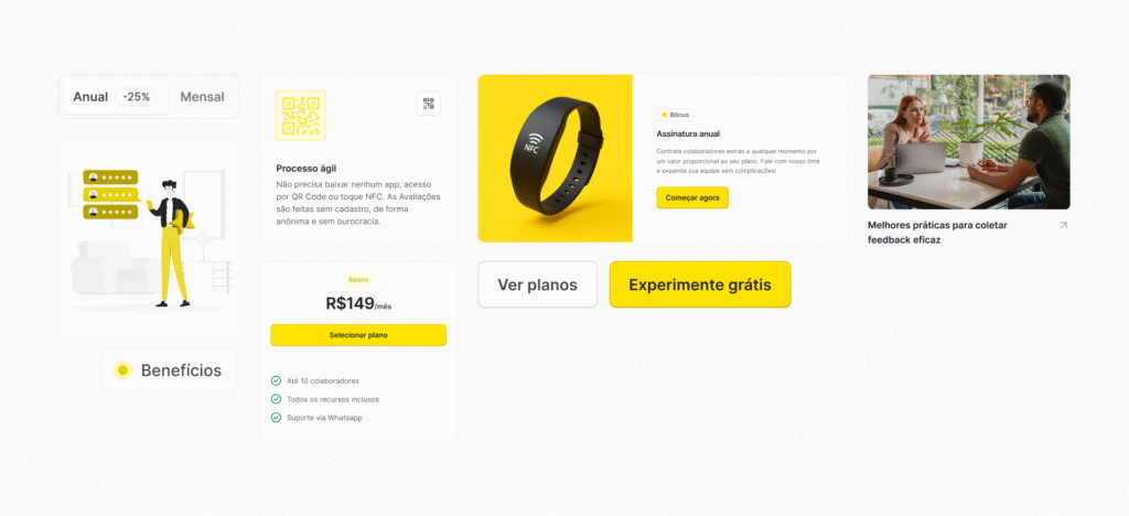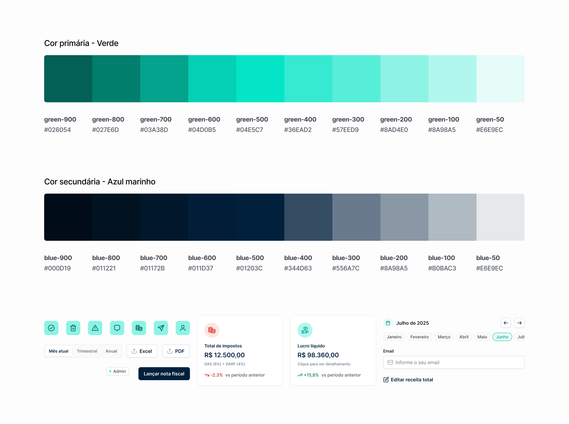 Marca, diretrizes e UI kit consistentes para acelerar desenvolvimento e manter qualidade visual em todos os pontos de contato.