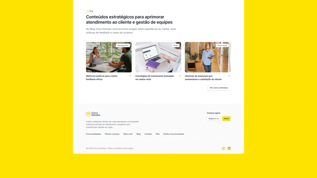 Roadmap contínuo, monitoramento e otimizações com base em dados e feedback dos usuários.