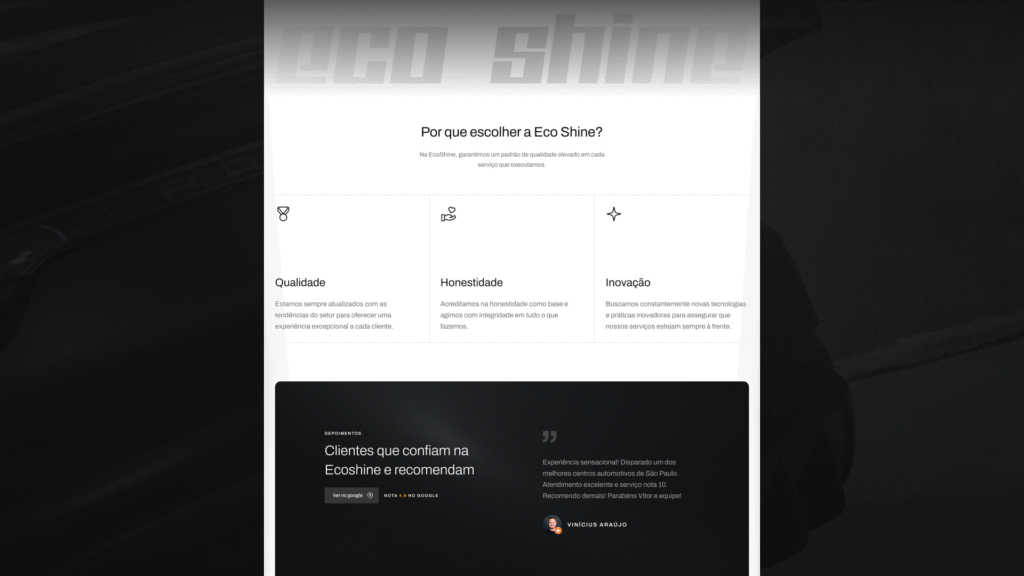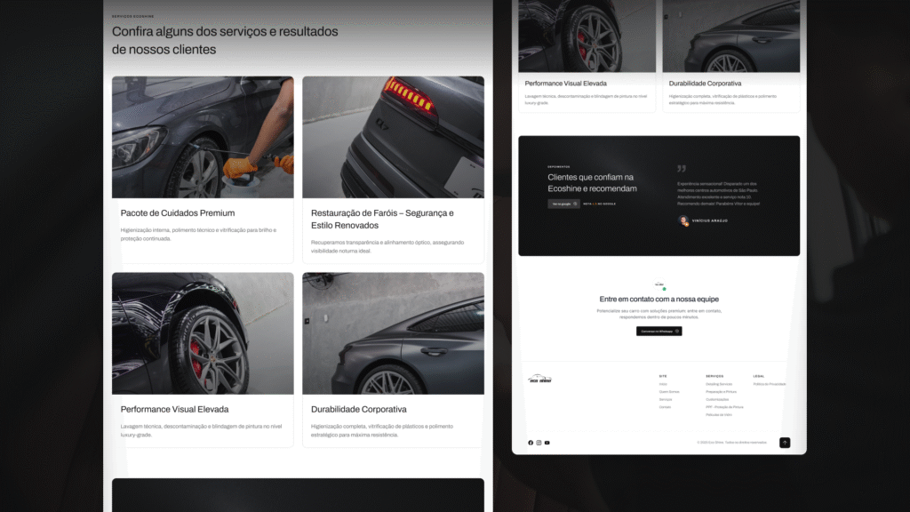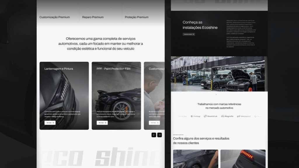 A Ecoshine é uma empresa voltada para a estética automotivaem carros de luxo. O nosso trabalho foi entregar um site que conversasse com o seu público-alvo – requintado e que transmitisse valor.