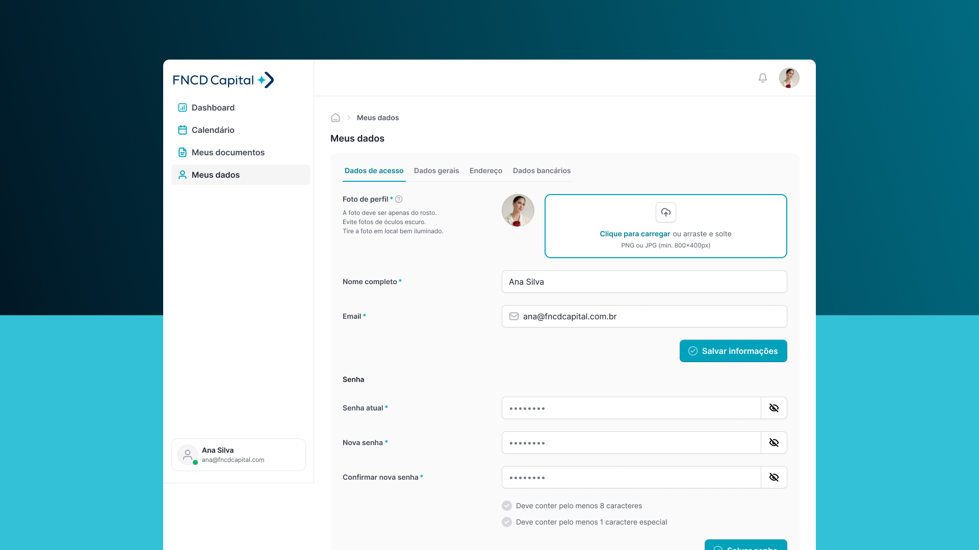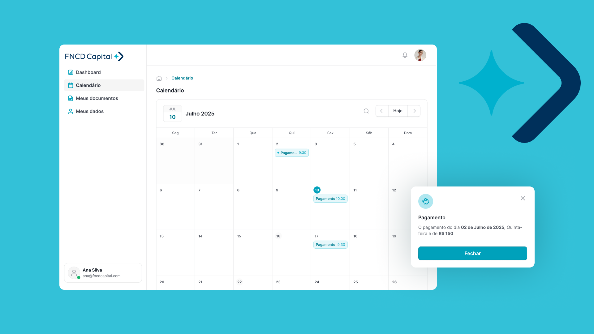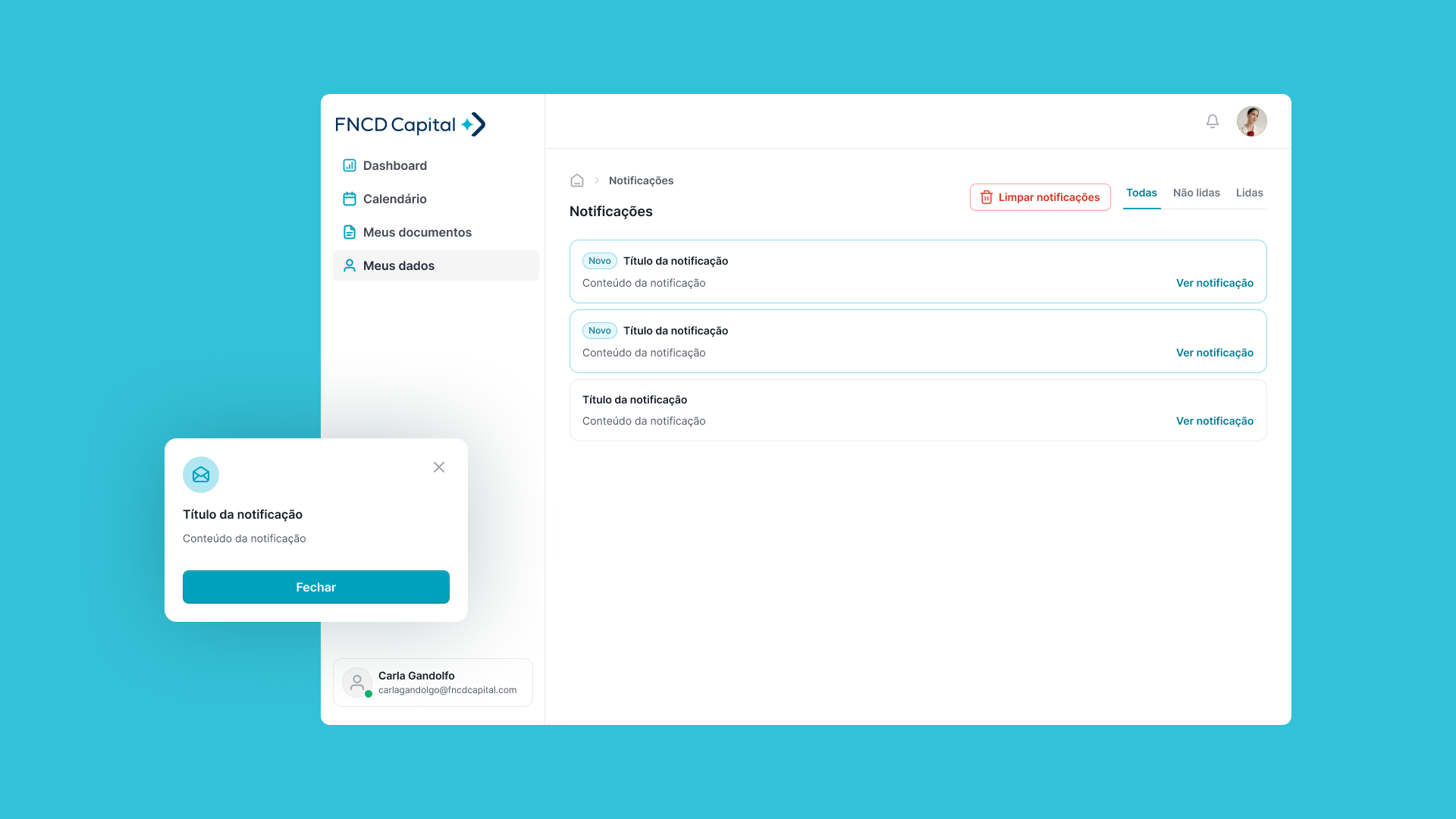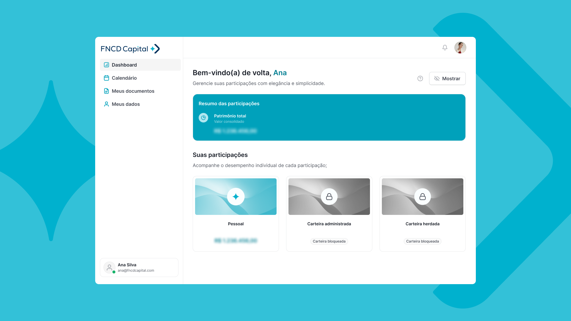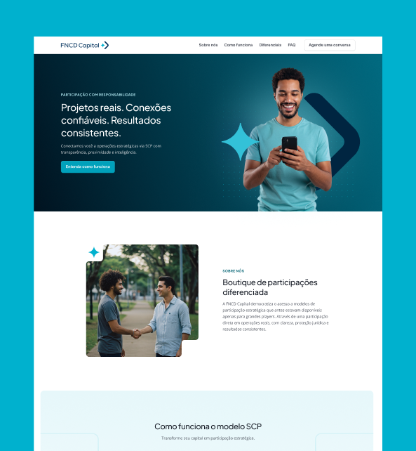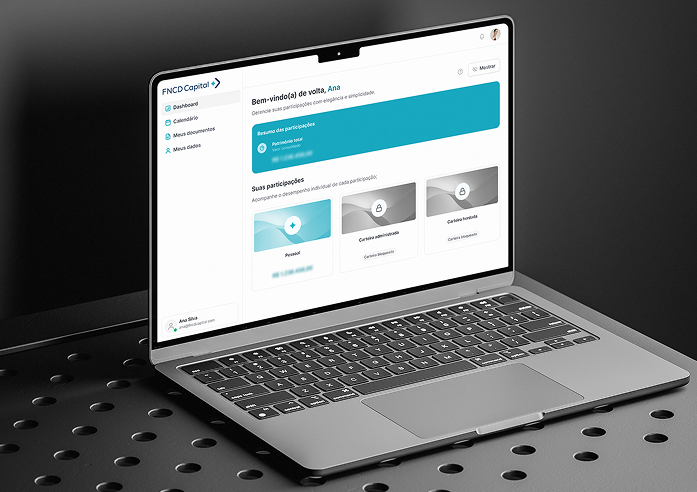 Um projeto desafiado – com prazo curto e muitas regras de investimento. FNCD é uma plataforma de gestão de ativos. Desenvolvemos o sistema e a landing page.