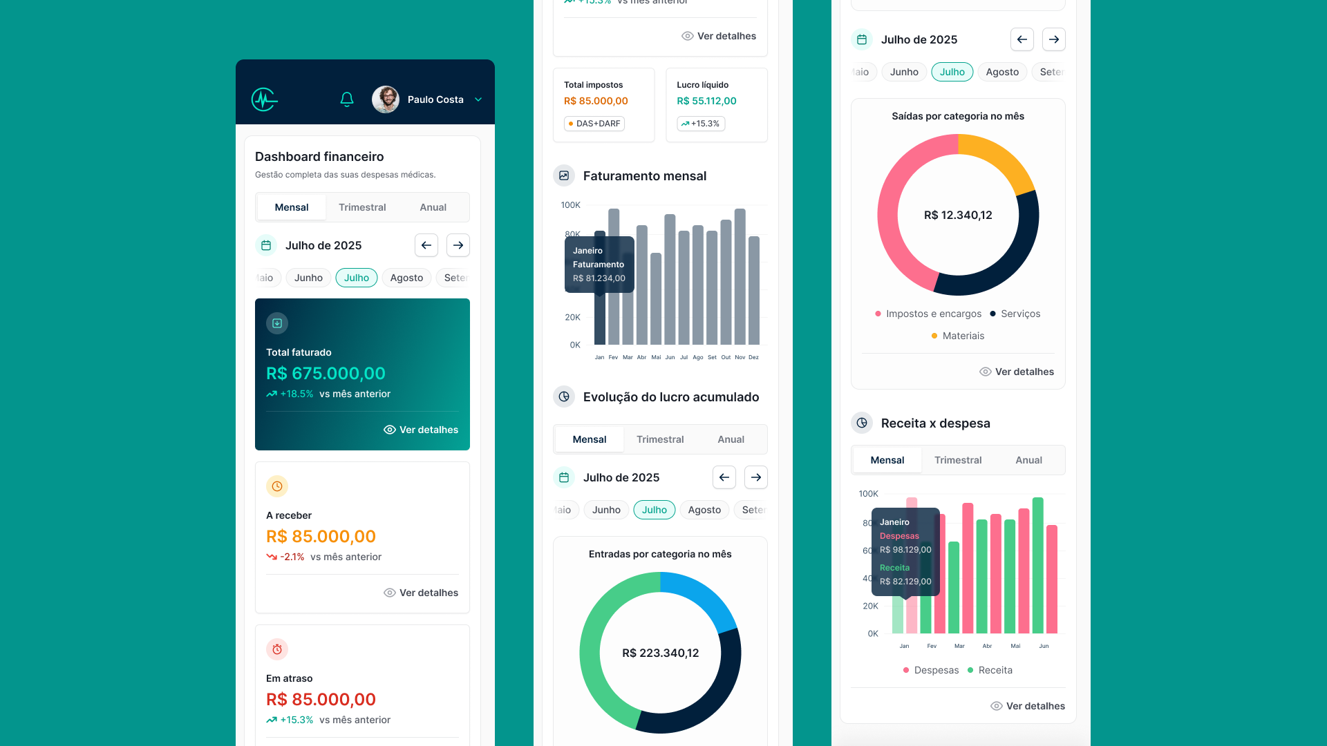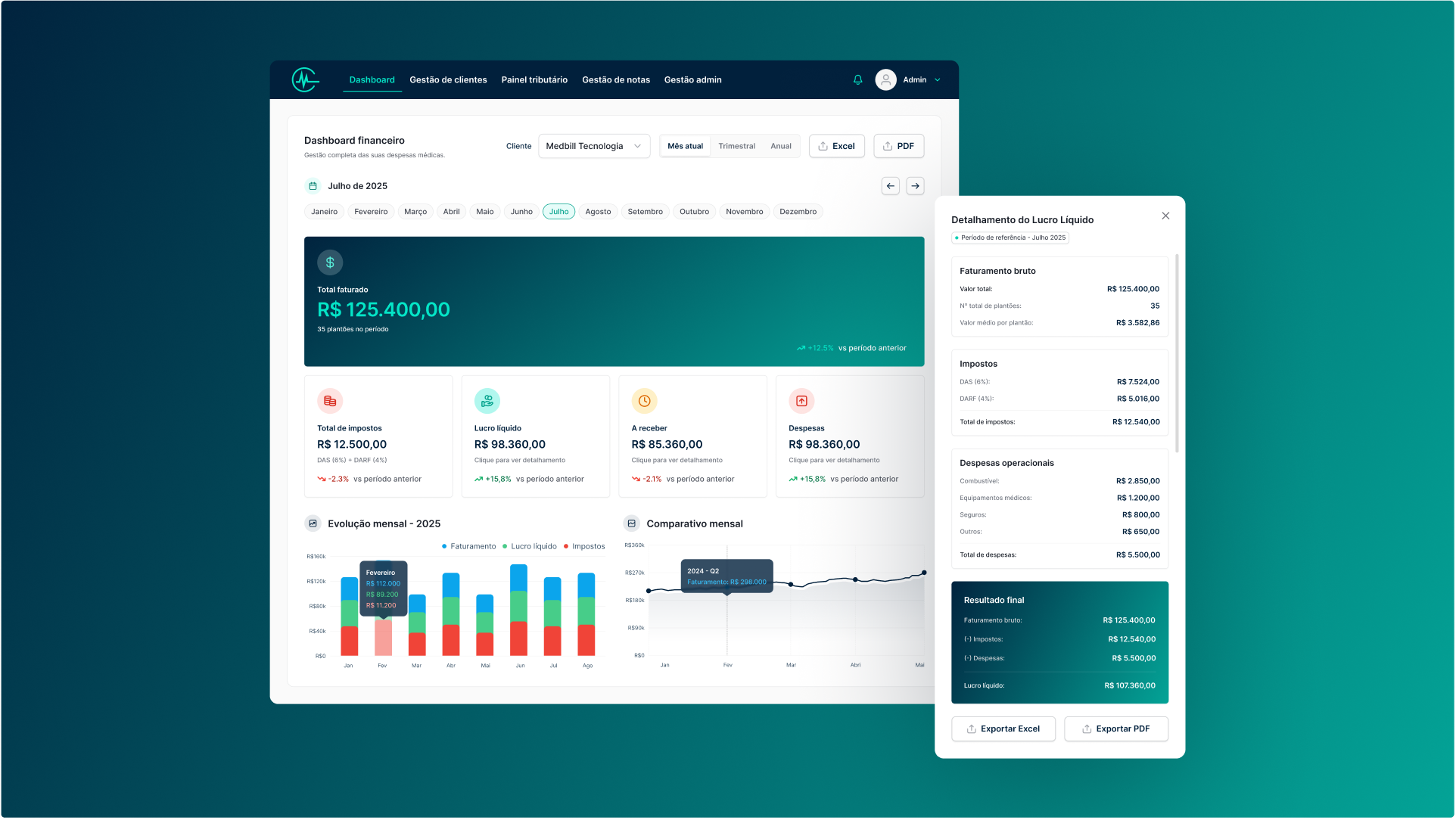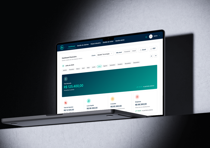Sistema completo de gestão contábil para médicos. Desenvolvemos uma plataforma que facilitasse a vida os profissionais na parte financeira.