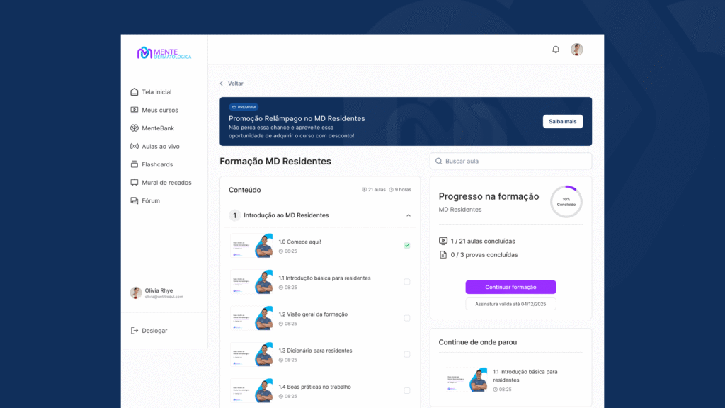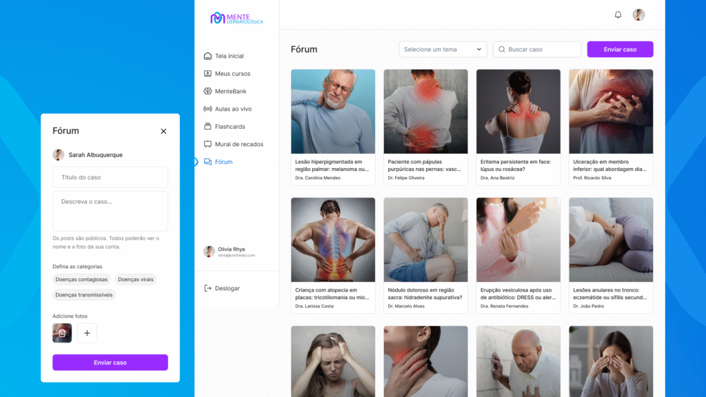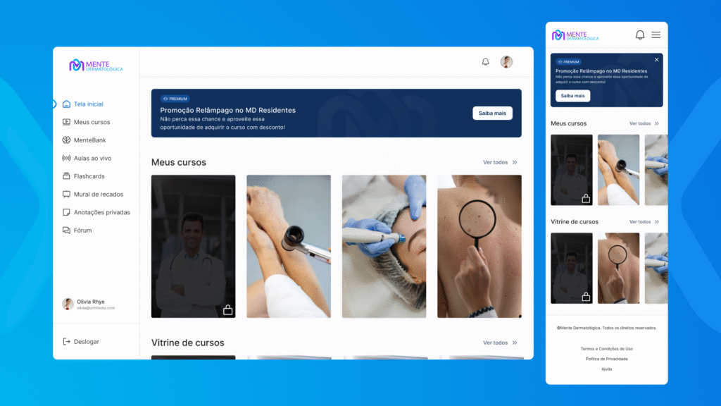 Plataforma de ensino focada em dermatologia. Construímos um sistema bem completo, na qual os alunos e professores pudessem interagir através de aulas ao vivo.