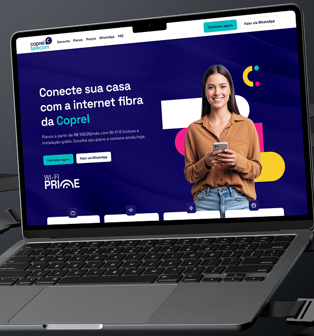 Principalmente WordPress (mais de 1/3 da internet utiliza), mas também desenvolvemos em Webflow para designs mais arrojados e técnicos.
